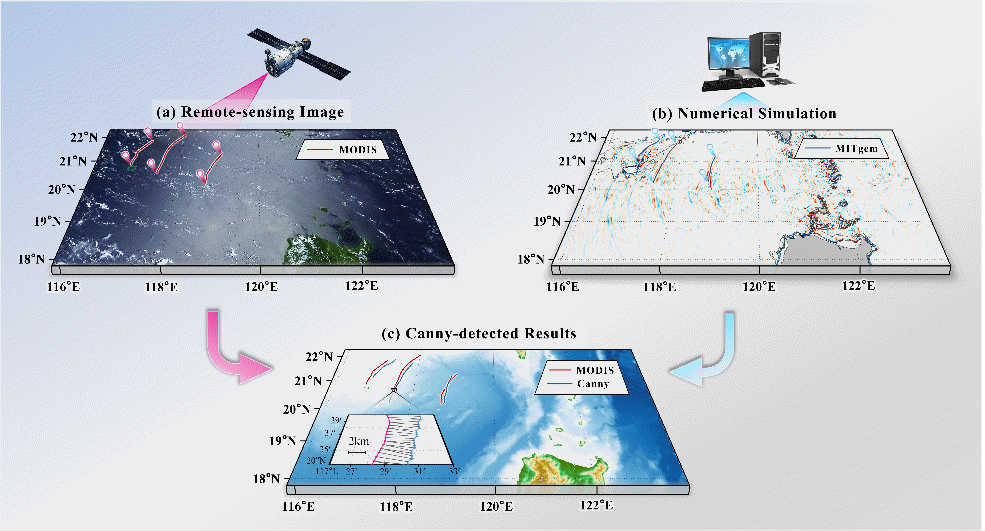 近日,中国科学院南海海洋研究所热带海洋环境实验室(LTO)蔡树群研究员团队,基于改进的Canny边缘检测算法,实现了对三维数值模型中内孤立波的高效、自动识别。该研究成果发表于国际期刊Ocean Engineering,硕士研究生陈璐为论文第一作者,龚延昆副研究员与许洁馨副研究员为共同通讯作者,蔡树群研究员与陈植武研究员为合作作者。